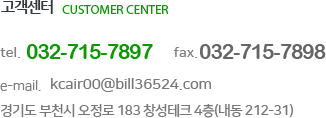 상호명 (주)케이씨에어필터텍 | 대표자 서동영 | 사업자등록번호 130-86-82082 | TEL 032-715-7897 | FAX 032-715-7898 | E-MAIL
